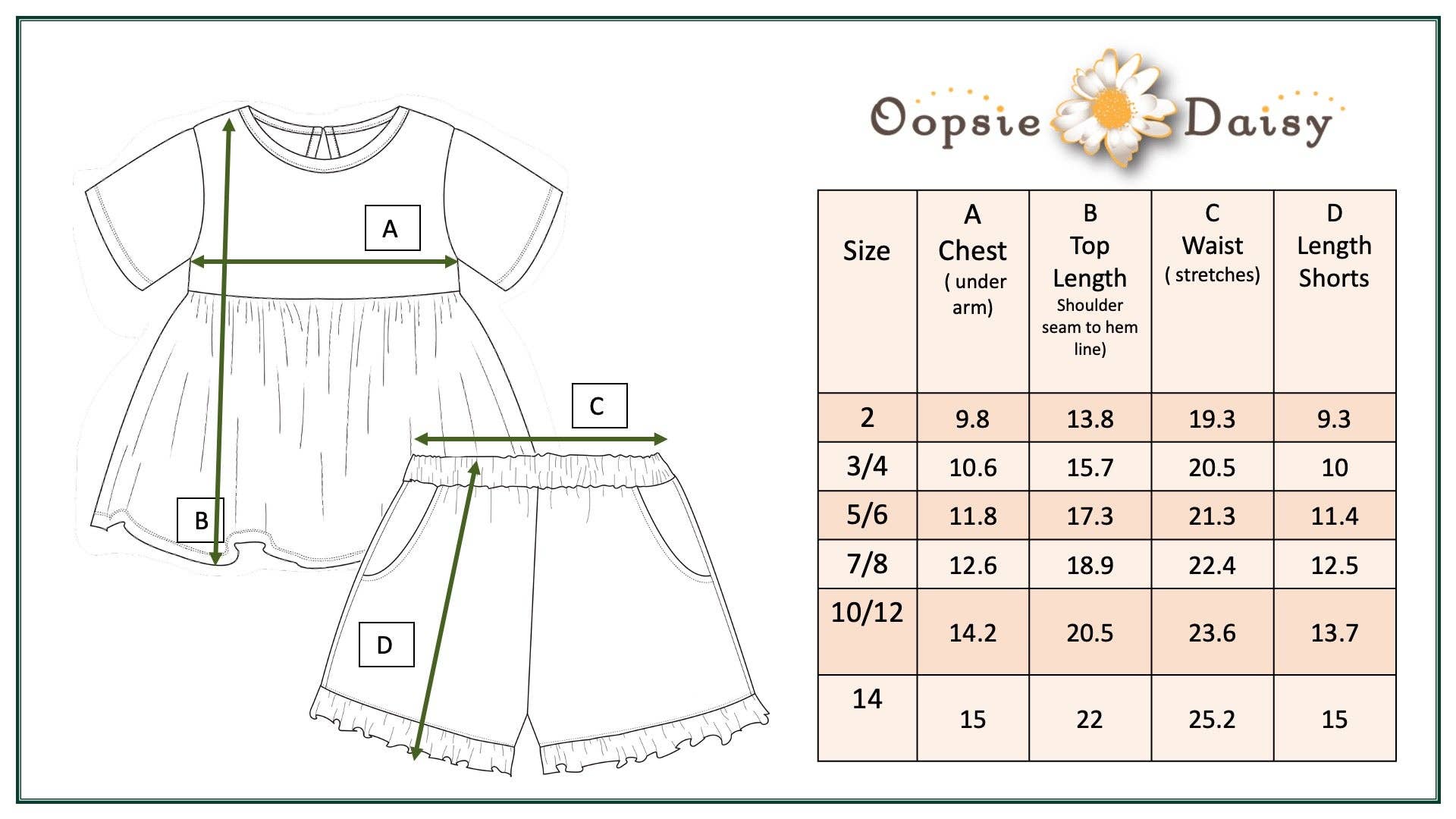 This adorable two-piece features a short-sleeve tunic top adorned with a tan and white retro daisy checkered print that's perfect for warm weather adventures.