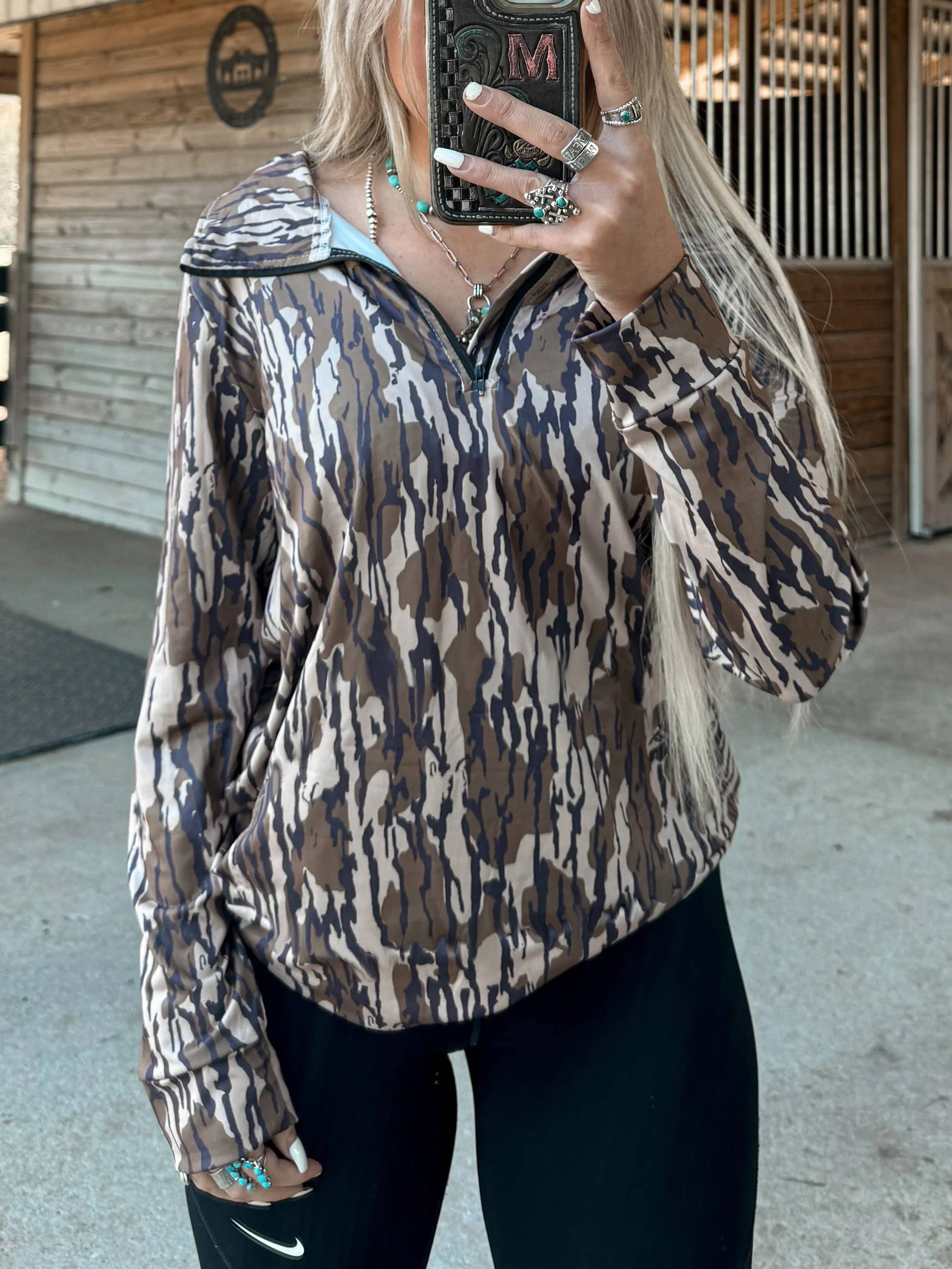 Unleash your inner adventurer with our Camo Quarter Zip! This versatile piece features a convenient quarter zip for easy temperature control on all your outdoor excursions. Stay comfortable while looking stylish.