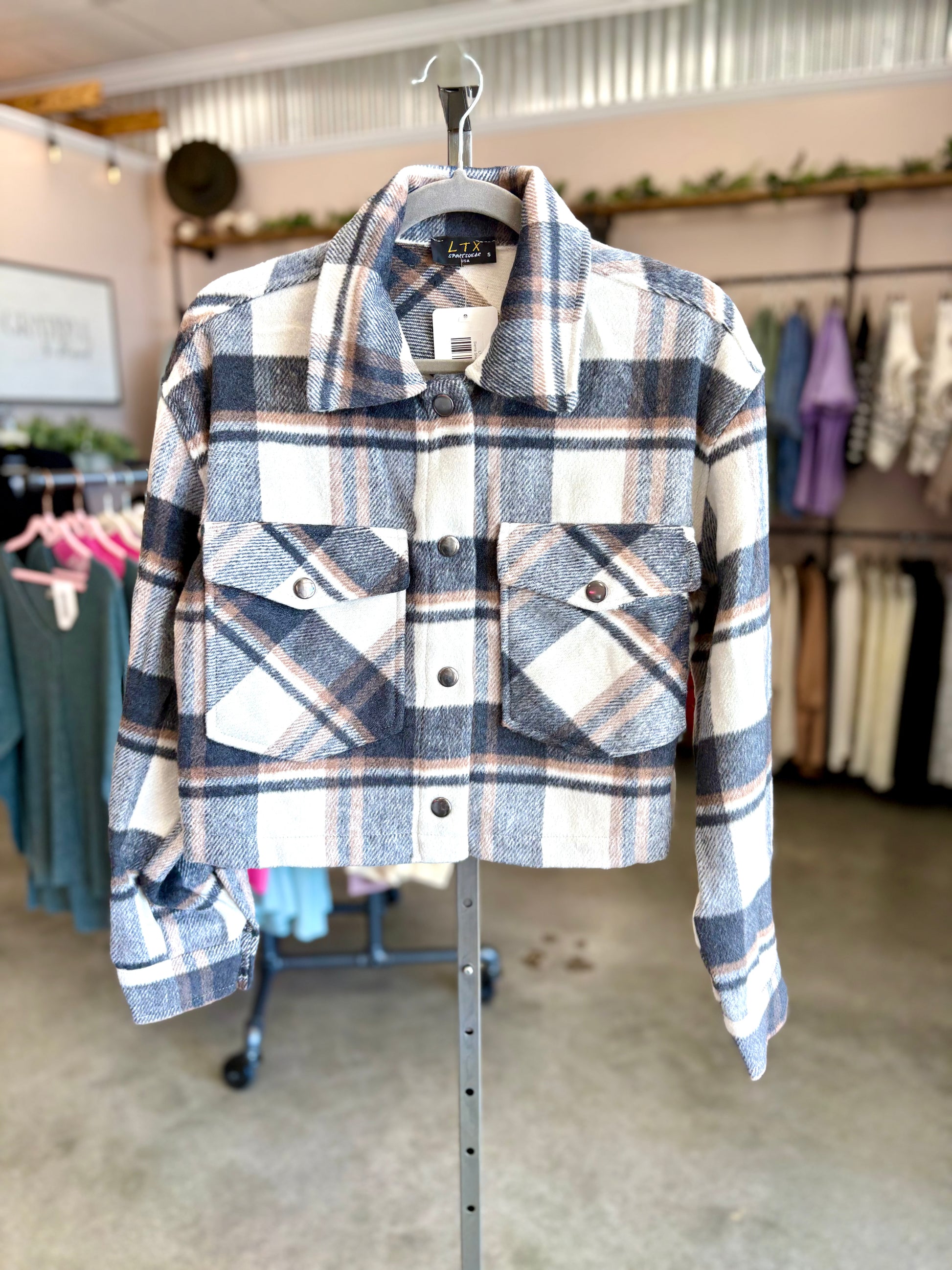Stay cozy and stylish with our Sierra Shacket! This cropped shacket features a trendy plaid design that will elevate any outfit. Perfect for cool weather, this versatile piece combines the best of a shirt and a jacket for the ultimate comfort and style.